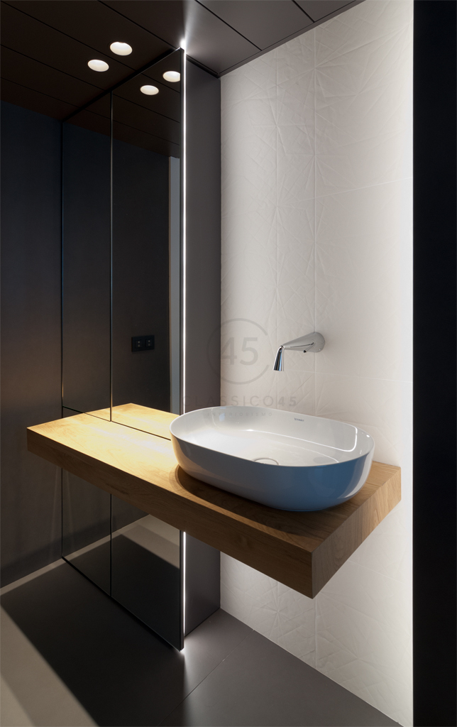 - Aseo: porcelánico gran formato (Inalco), baldosas FOLDED (Mutina), sanitarios Duravit, grifería Gessi